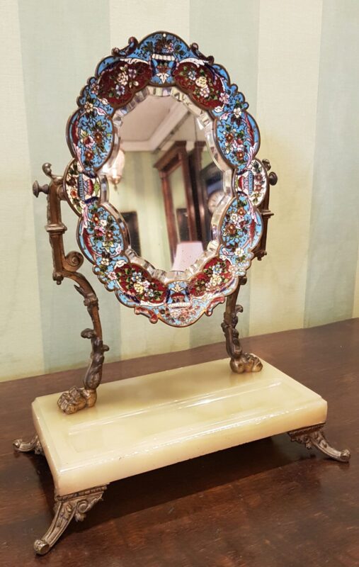 Agate & Cloisonné frame around a hand bevelled mirror