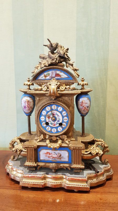 French Ormolu Mantle Clock with Sevres style plaques