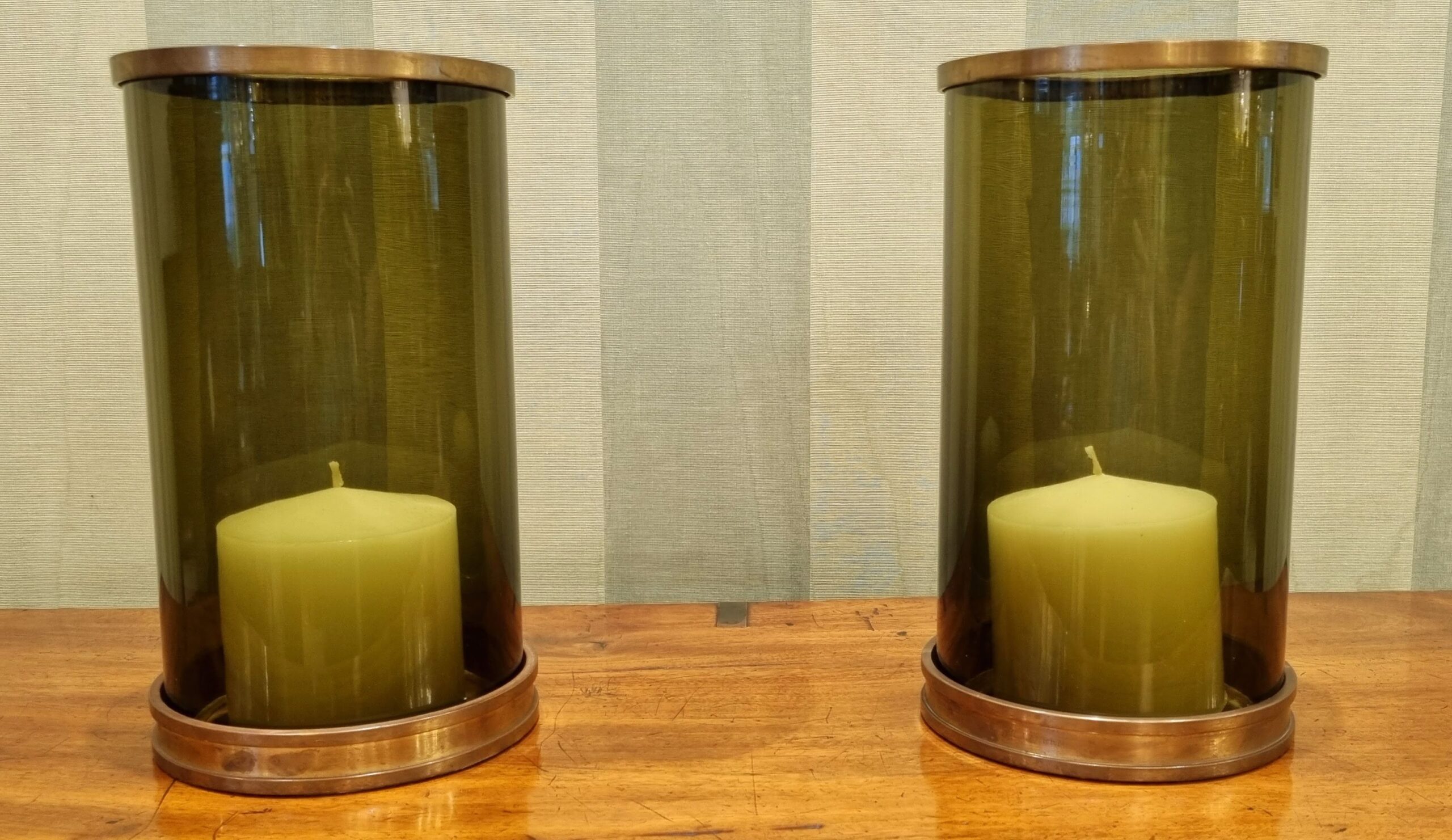 Pair green glass ‘Hurricane’ candle protectors