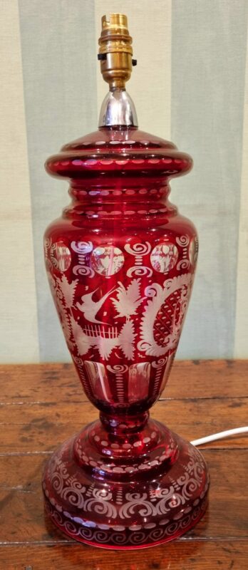 European etched glass table lamp